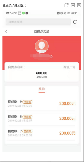 订单完成后自提点获得提成